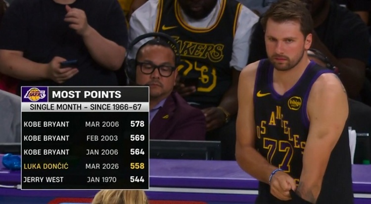 此役过后,东契奇3月总计得到600分,超越科比加冕湖人队史单月得分王(自1966-67赛季后)。这样的单月得分表现在历史上排名如何?今天老震就来盘点下(按单月总得分升序排列)。