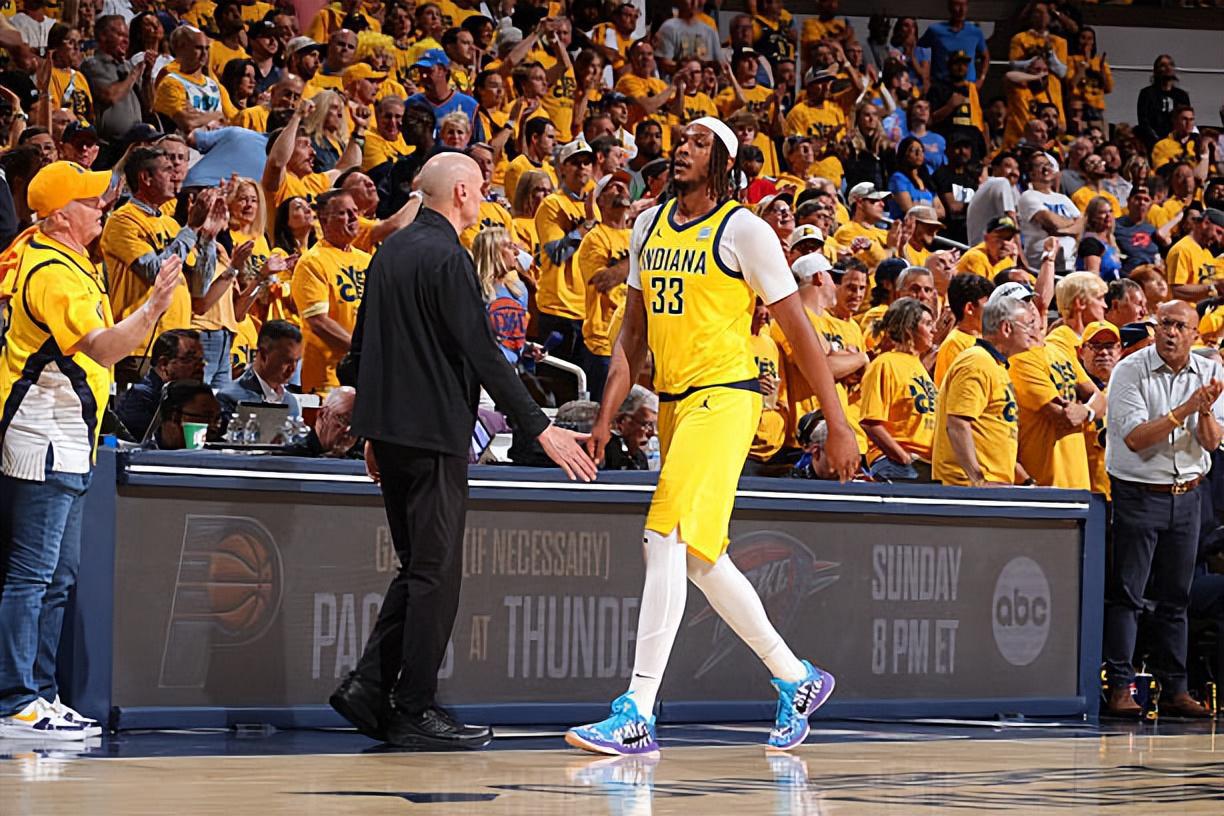 本场比赛中,虽然步行者取得了比赛的胜利,但是球队的先发中锋迈尔斯-特纳(Myles Turner)的表现其实是不太理想的。特纳全场出场26分09秒,投篮9中1,三分线外3中0,罚球2中1,仅得到了3分4篮板1助攻2盖帽的数据,还有1次失误和2次犯规,正负值为+19。特纳在进攻端毫无手感,他其实也是得到了不少的出手机会,但是他看起来完全没有办法展现出应有的得分能力。特纳在防守端的表现还是不错的,确实是展现出了一些护筐方面的能力,但是作为一名攻守兼备能里能外的全能型内线球员,特纳这样的表现,确实是有些令人失望了。以特纳的能力,他完全可以在进攻端为球队提供更多的支持的,然而他完全没有做到这一点。